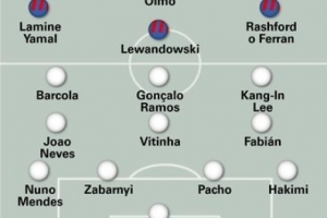 今晚的挑战可能更为艰巨,因为伤病潮正侵袭着巴黎。尽管他们是法甲领头羊,但此前已败给马赛。恩里克几周前就知道登贝莱和杜埃无法冲击巴萨防线,并一直在打磨B计划,但克瓦拉茨赫利亚在最后时刻也加入了伤病名单。在今年欧冠决赛中摧毁国际米兰的首发攻击线将无法在巴塞罗那出战,马尔基尼奥斯也无法坐镇后防,而中场方面维蒂尼亚、法比安和若奥-内维斯也只是刚刚够用。巴尔科拉、贡萨洛-拉莫斯和李刚仁可能组成锋线,但这并不意味着能低估巴黎,他们此前已经以4-0大胜亚特兰大开启了卫冕征程。